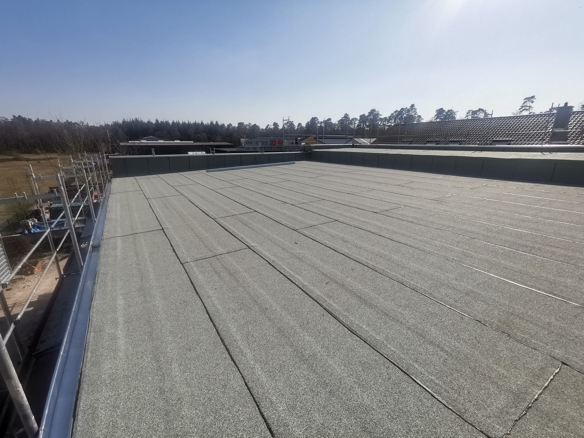 Ketsch - Neubau eines Einfamilienhauses in Ketsch mit zwei verschiedenen Dachflächen. Das Flachdach wurde mit einer vor konfektionierten EPDM-Abdichtung ausgeführt.